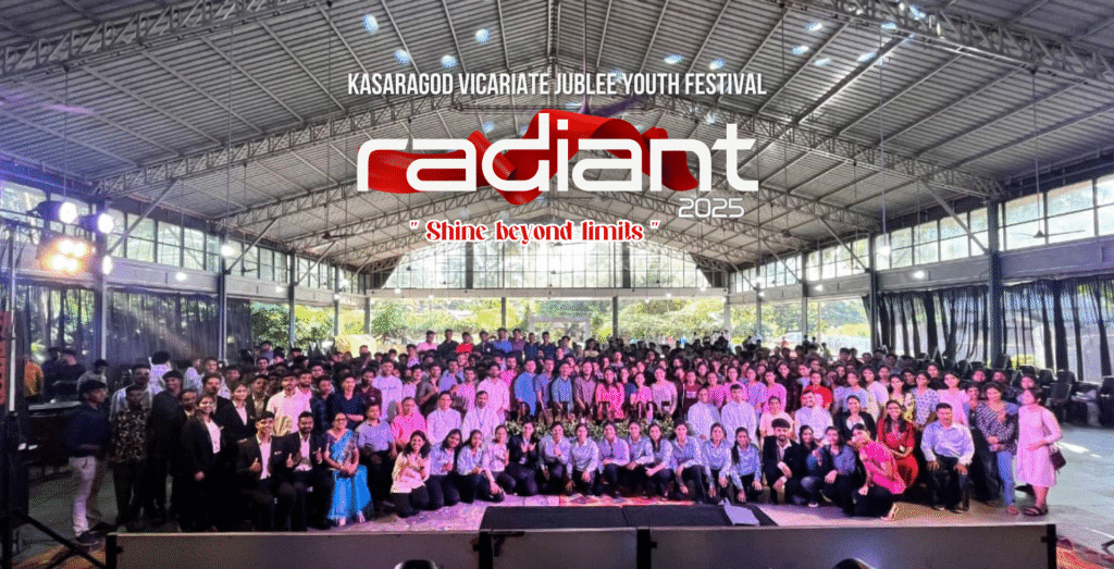 Indian Catholic Youth Movement Kasaragod Vicariate, in collaboration with ICYM Manjeshwar Unit, organized a vibrant youth get-together themed Radiant 2025 – with the tagline “Shine Beyond Limits!” on 24th August 2025 at the Kalasparsham Auditorium, Manjeshwar.